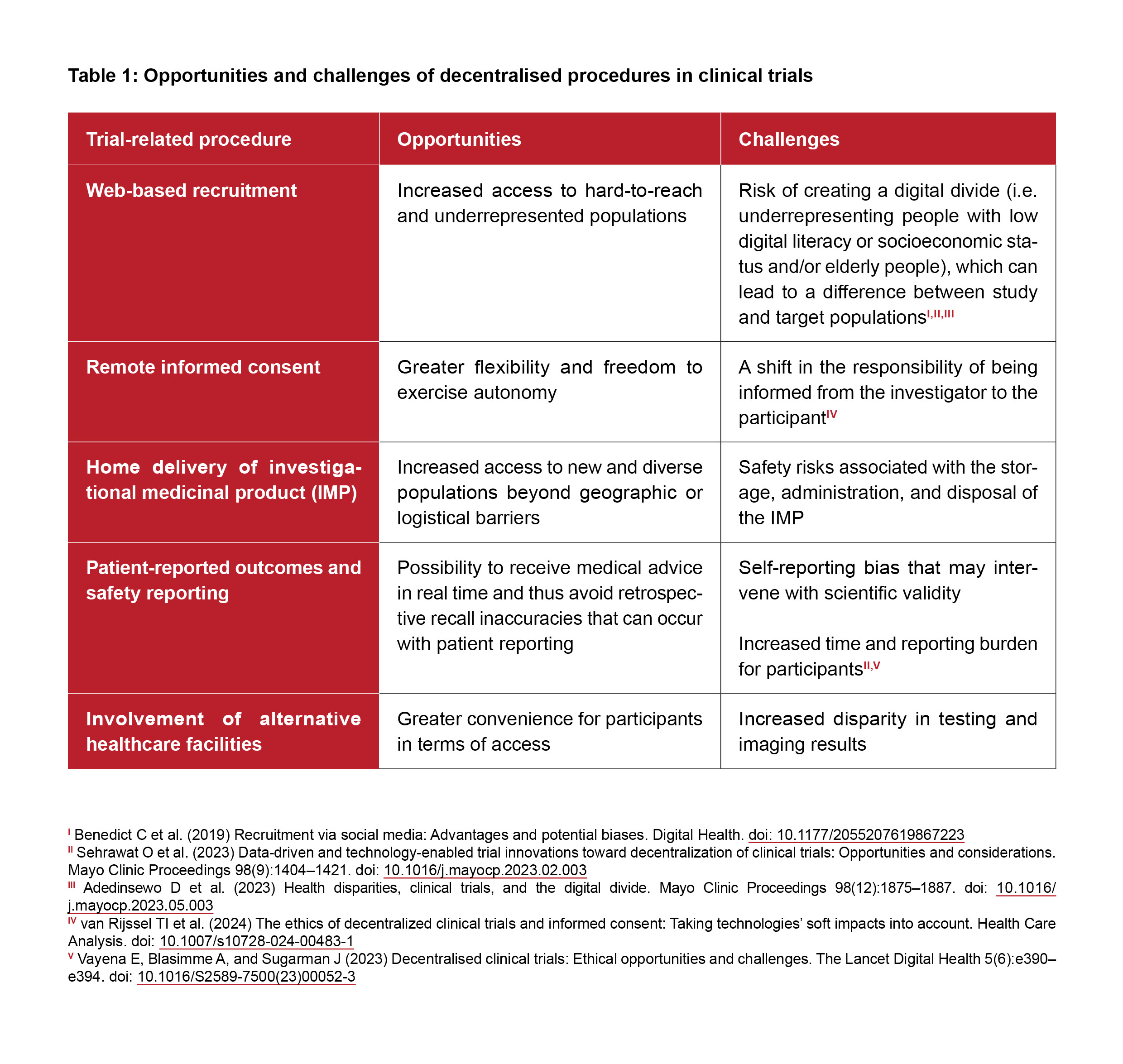 - Vayena E, Blasimme A, and Sugarman J (2023) Decentralised clinical trials: Ethical opportunities and challenges. The Lancet Digital Health 5(6):e390–e394. doi: 10.1016/S2589-7500(23)00052-3